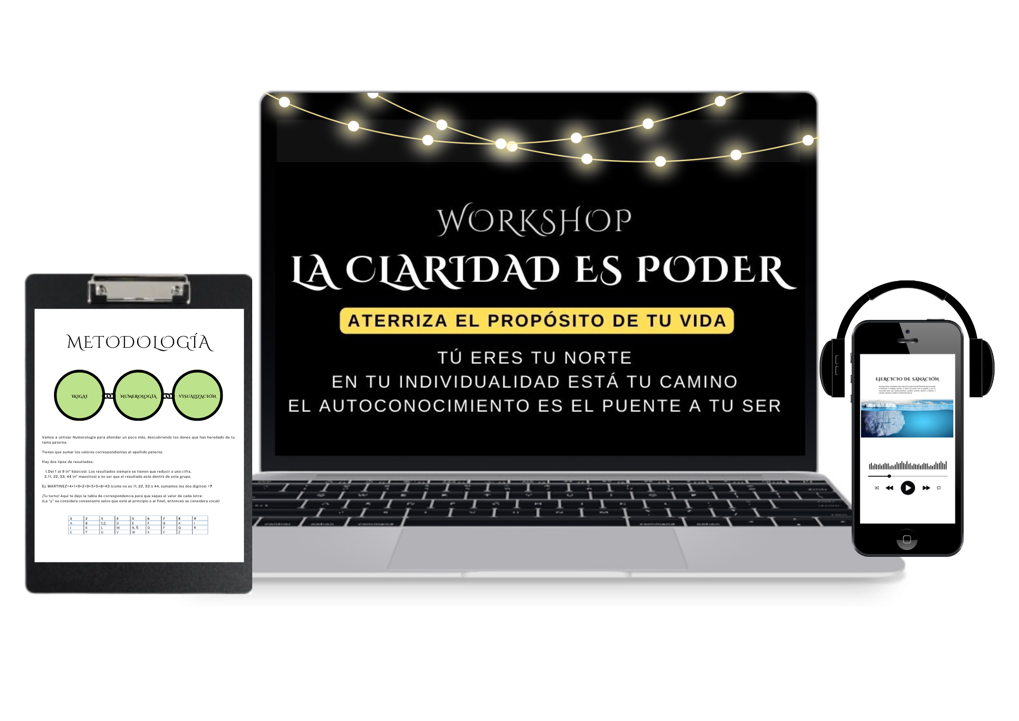 A través de este Taller lograrás verbalizar y escribir en papel cuál es el Propósito de tu Vida. La Claridad es Poder, cuando descubrimos realmente para qué somos como somos, para qué hemos vivido todo lo que hemos vivido y descubrimos por fin para qué hemos nacido, toda nuestra energía se organiza y dirige con facilidad hacia lo que queremos y para lo que hemos sido llamados. La Claridad te ayuda a pasar a la acción y así es como la Ley de la Atracción se activa y de esta manera empezamos a caminar hacia nuestra libertad, nuestra realización, nuestra abundancia y prosperidad.   Contenido del taller: